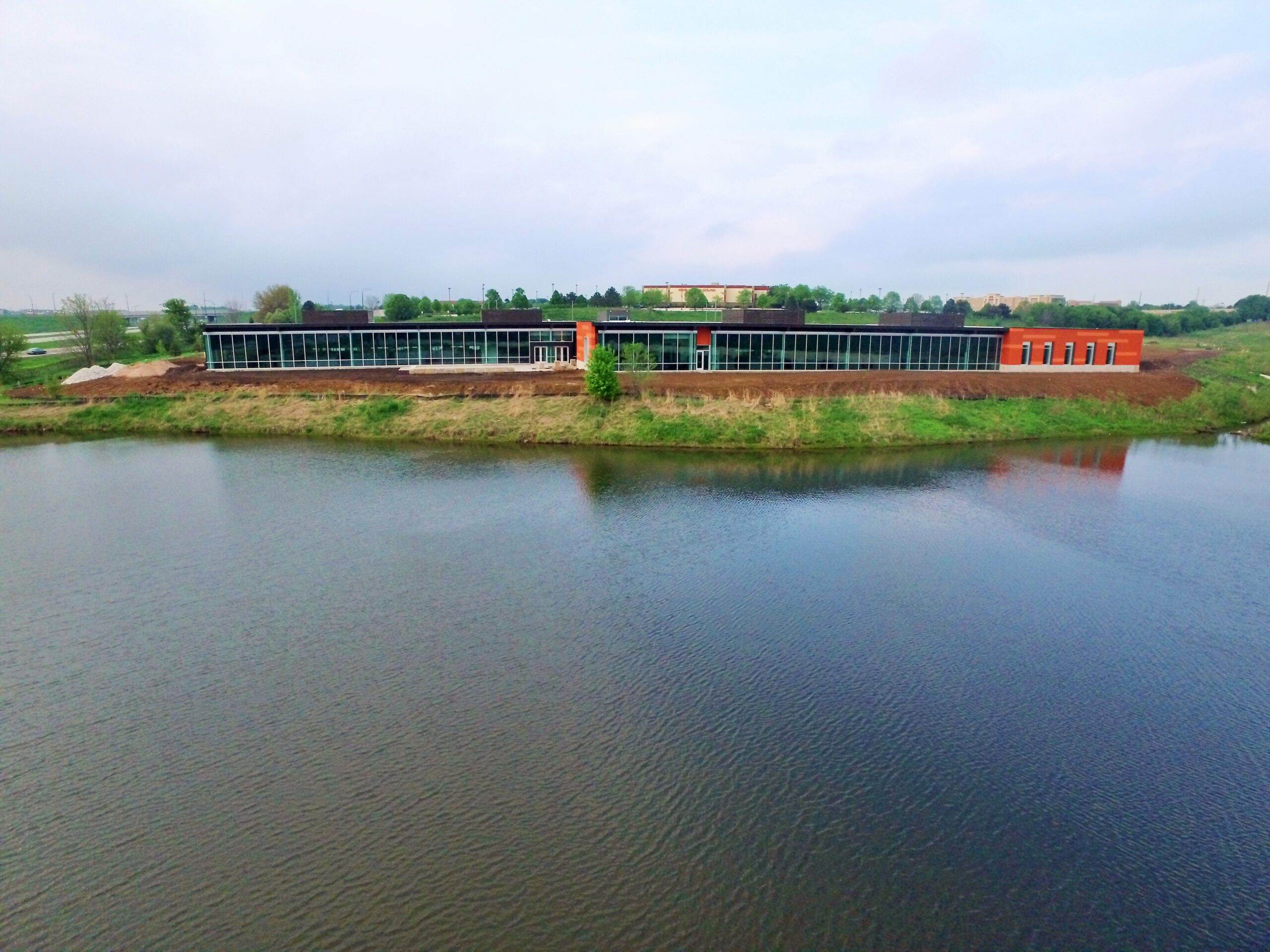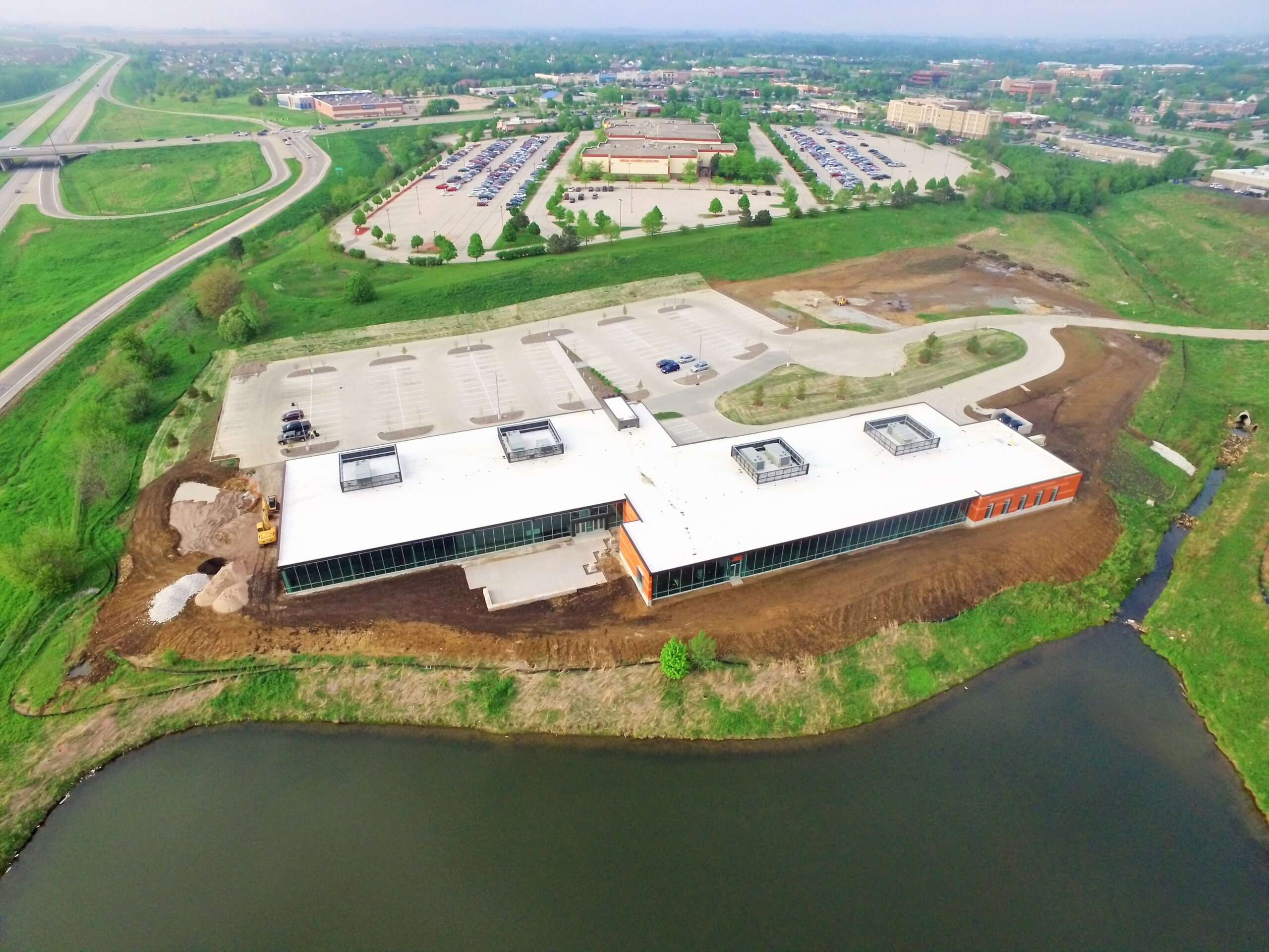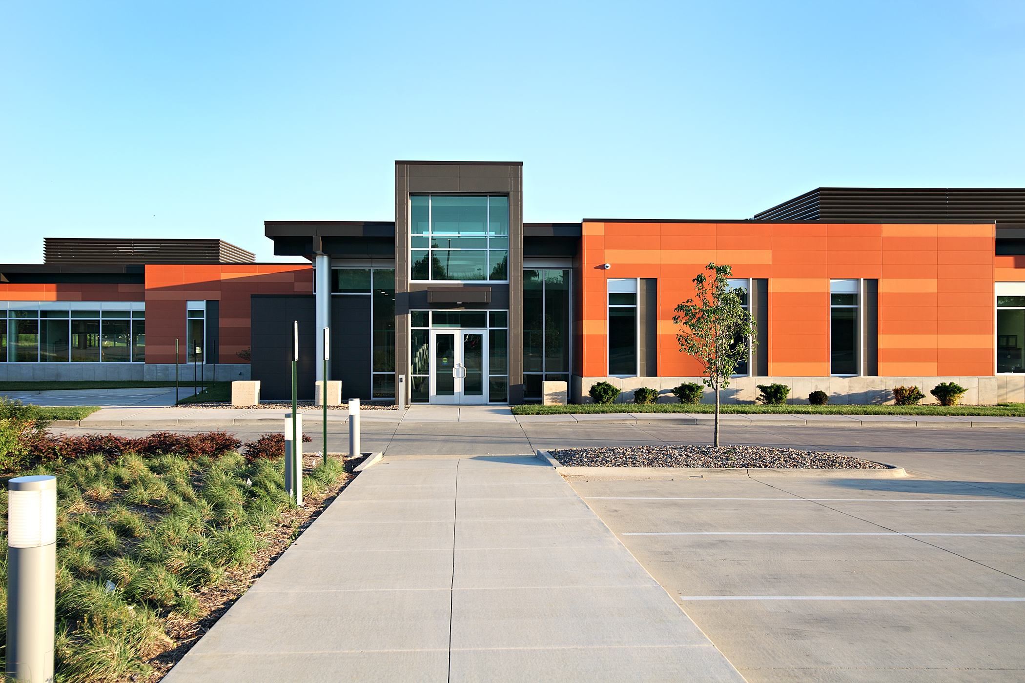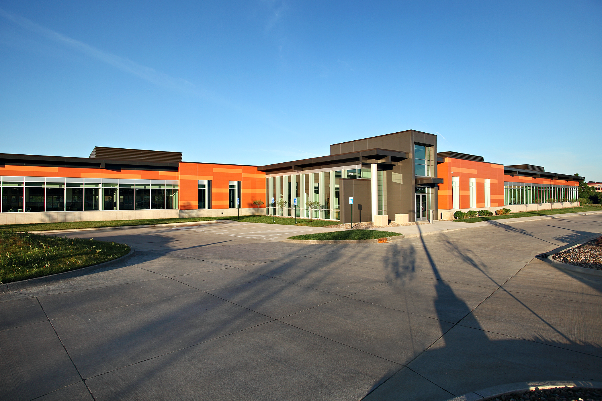 BITCO Insurance Companies, formerly known as Bituminous Insurance Company, is a nationally recognized insurance provider for the construction industry. Studio 483 designed the new 43,000-square-foot corporate headquarters for the organization. The building is a single-story, steel frame primarily clad in a colorful fiber cement rainscreen and glass and is located on a seven-acre site immediately contiguous to the Interstate 74 corridor overlooking a one-acre water feature. The south face of the structure oriented toward the water is 80% glass, which floods the interior with daylight and provides pleasant views of the surrounding environment.