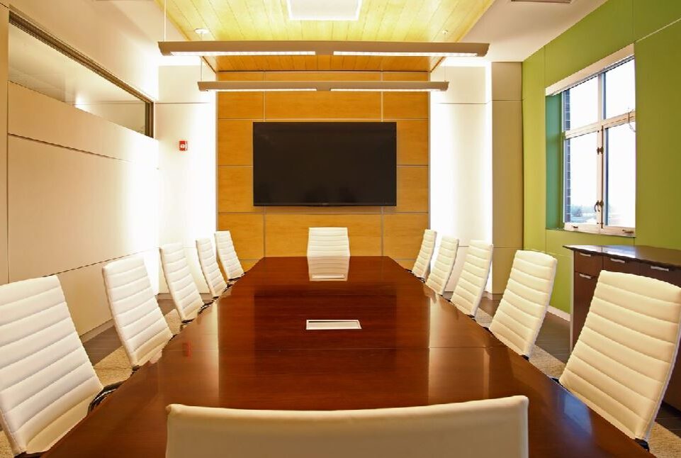 The Illinois offices of the Quad Cities Chamber of Commerce were relocated after the organization outgrew its space. After a fairly exhaustive search for space throughout the Quad Cities, the Chamber settled on the RiverStation building at Bass Street Landing. The RiverStation building is one of the centerpieces of an emerging river front reclamation in downtown Moline. The Chamber asked Studio 483 to design a build-out of approximately 5,000 square feet on the third floor that would represent the mission of the Chamber and symbolize its position as a champion for the greater Quad Cities region. It was essential to design a space that projected a positive and welcoming image of the Chamber and the Quad Cities as a whole. The organization within the space is simple and clear. The material palette restrained but elegant.