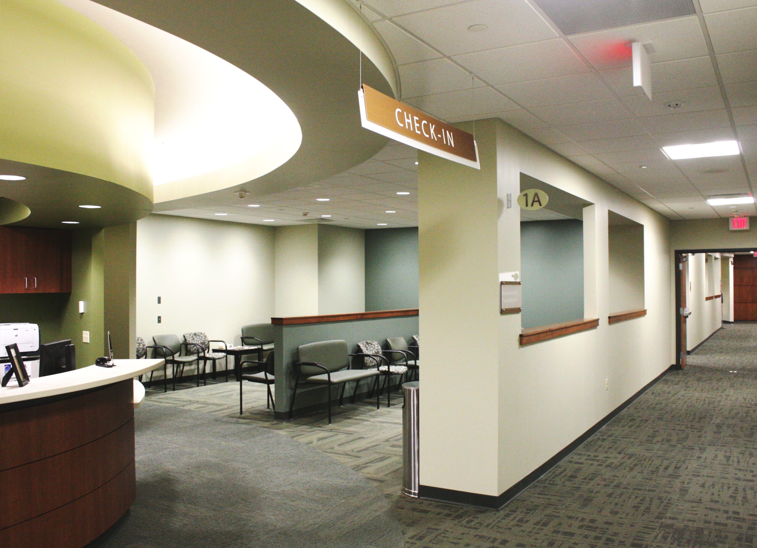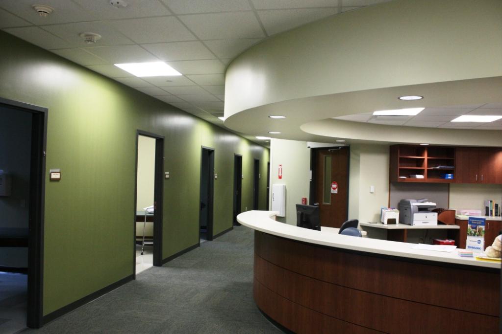 The Graham Medical Group consists of physicians and health care providers affiliated with Graham Hospital in Canton, Illinois. The new clinic addition is a two-story, 33,000-square-foot expansion of the original four-story, 68,000-square-foot medical office building. The $9 million clinic expansion features complimentary design of the original clinic, is arranged for simple patient wayfinding, and incorporates a standardized pod design for pairs of physicians and providers. Separate waiting areas are visible from the main corridor, and each reception area is identified by curved soffits and light coves for ease of visibility. The new area includes provider suites, oncology care, cardiac rehabilitation, physical and occupational therapy, and a warm-water therapy pool. Wood tones and a warm palate of finishes are used throughout to provide a patient-centered, comfortable health care facility.