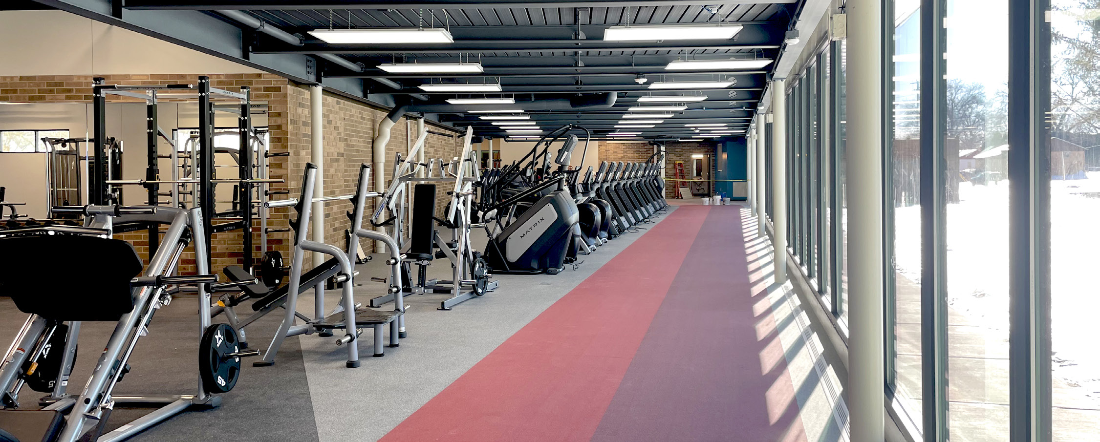 The former classrooms and synagogue of the center were converted into an open 4,500-sf branch library space and a 2,800-sf community room with theater seating. The east wall was opened to provide access to the new exterior terrace and reading garden. The rest of the building was renovated and expanded with a new storefront for the wellness center. Amenities include a 115-meter running track, child watch and play area, group exercise room, offices, and locker rooms for the YMCA. The existing commercial kitchen was maintained for meals to be prepared and delivered by the YMCA, and the lower-level gymnasium was restored to mint condition. The once segmented building now boasts an open floor plan and an overabundance of natural light to enhance fitness and wellness.